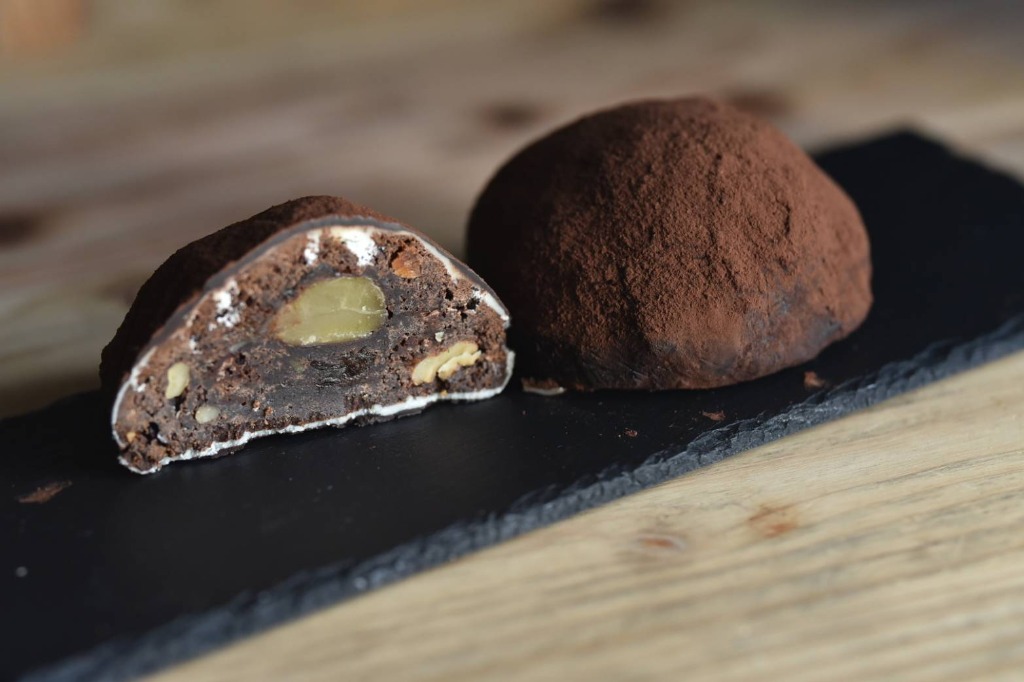 クリスマスシーズンにおなじみのシュトーレンですが、こちらをチョコ生地で作り、手のひらサイズの丸型にして、真ん中には渋皮栗を一粒!