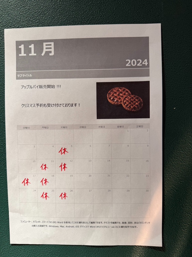 遅くなってしまいましたが、11月のお休みのお知らせ致します。