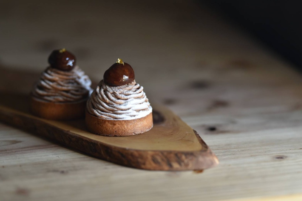 「焼きモンブラン」は、土台の部分が栗の風味のアーモンドクリームをたっぷりと入れたタルトです。 その名の通り焼いたモンブランなので、濃いお味のマロンペーストも少しだけカリっとしていますよ。ペーストの中にも、上のトッピングにも渋皮栗を… とても贅沢で食べ応えもばっちり!