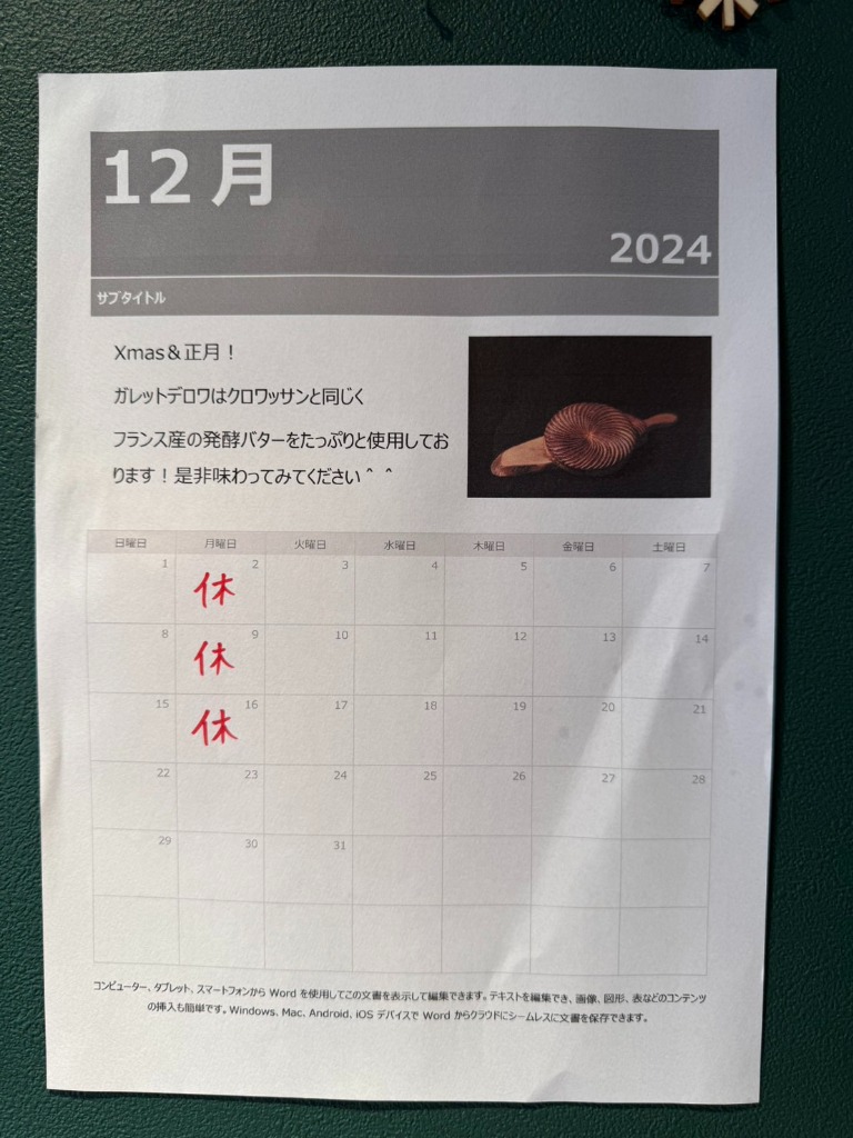 12月の休業日をお知らせ致します。年末年始も営業しておりますので、ぜひお越しくださいね!