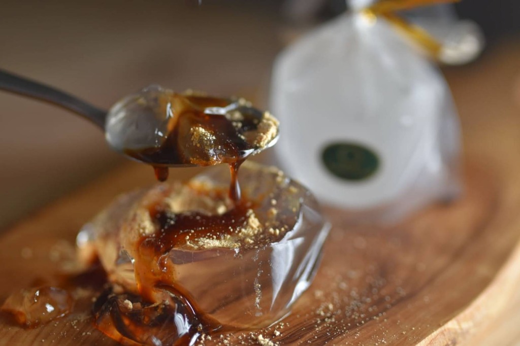 昨年の夏にも登場しておりましたが、「水ゼリー」はいかがですか?見た目も透明で涼しげですが、つるんぷるんな食感もおすすめポイント! きなこと黒みつをかけてどうぞ。