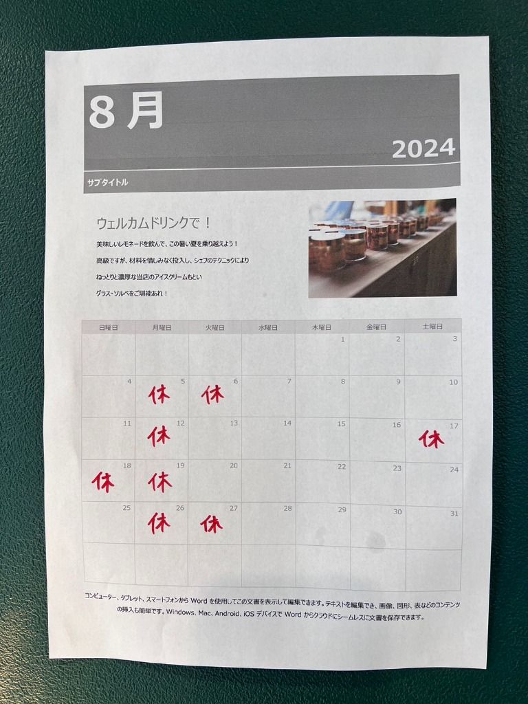 基本的には、月曜日定休なのですが、今月は変則的となっておりますので、皆様にはご迷惑をお掛け致しますが、今後ともよろしくお願い致します。
